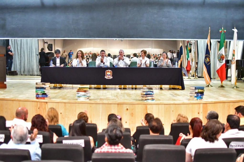 Durante la entrega de 700 libros que la familia del pediatra Ricardo del Río, donó a la Facultad de Medicina de la UAdeC, el alcalde