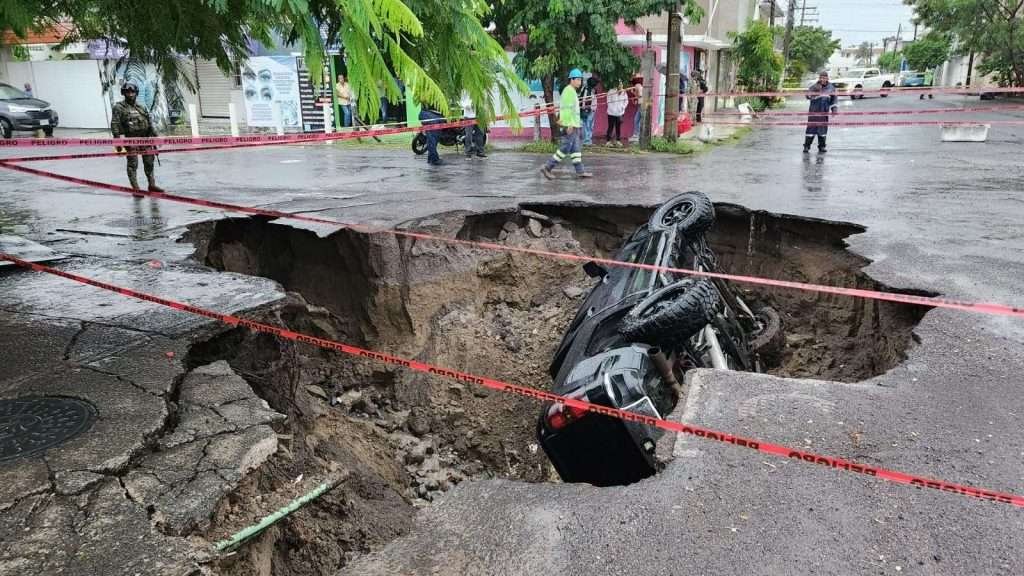 Las intensas lluvias que azotan Veracruz han causado graves daños en calles y carreteras, donde los socavones se han convertido en una amenaza constante. Uno