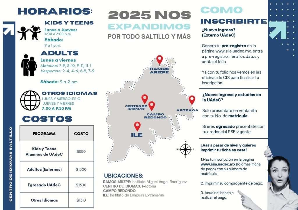 SALTILLO, Coahuila. 6 de enero de 2025. El Centro de Idiomas Saltillo de la Universidad Autónoma de Coahuila, abre su proceso de inscripciones del 6