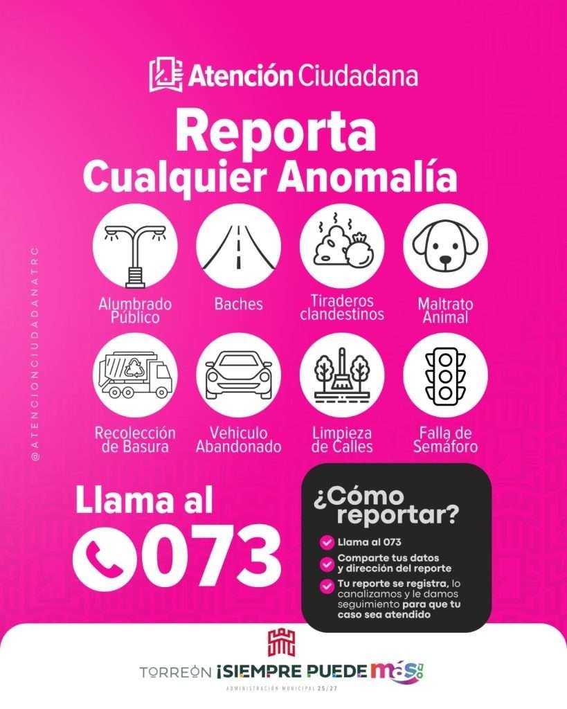 Torreón, Coahuila a 14 de junio del 2025.- La Dirección de Atención Ciudadana de Torreón tiene a disposición diversos medios de contacto para reportar y