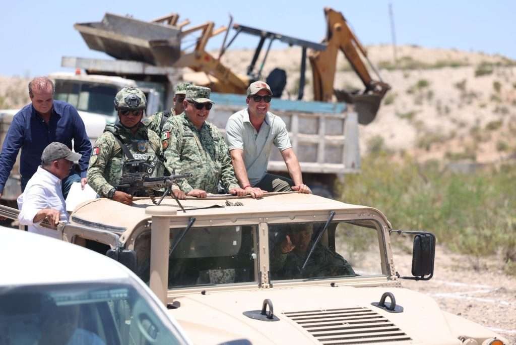 Acuña, Coahuila de Zaragoza ; a 15 de junio de 2025.- Al poner la primera piedra del cuartel militar en el ejido La Linda, ubicado