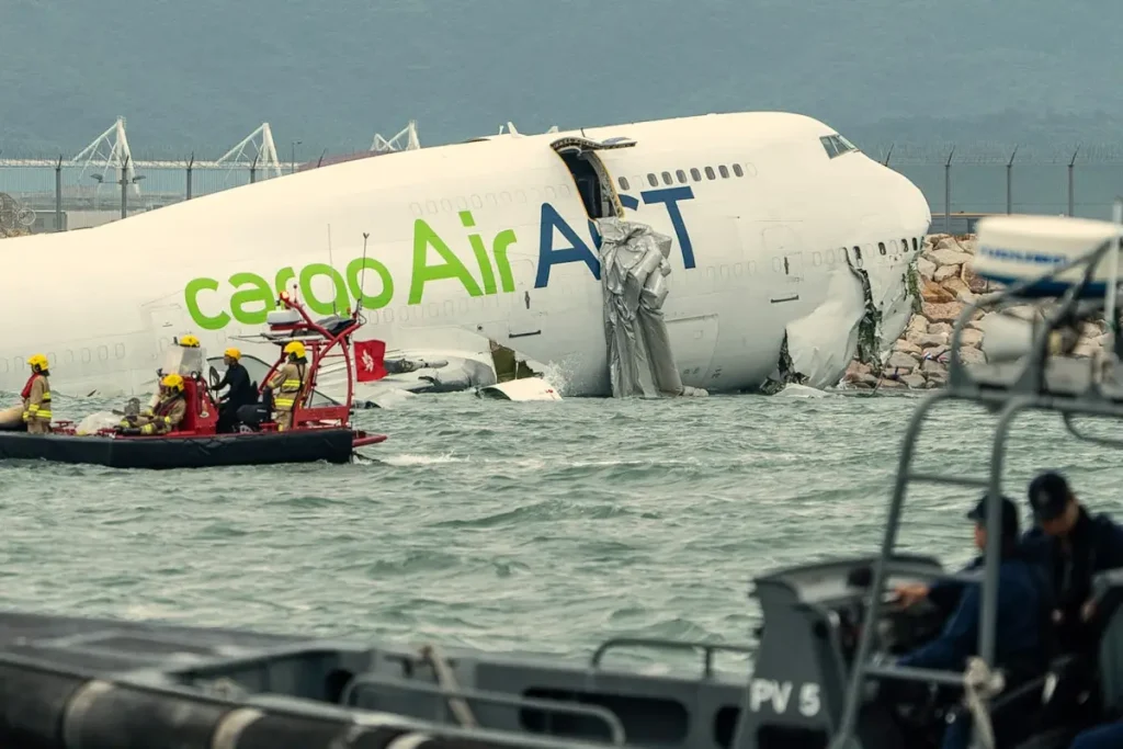 Dos operarios de tierra fallecieron la madrugada de este lunes cuando un avión de carga procedente de Dubái se salió de la nueva pista del