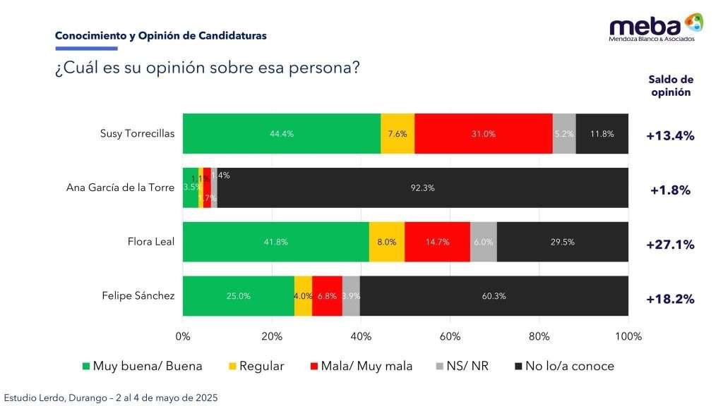 Lerdo, Durango – 7 de mayo de 2025 – La más reciente encuesta realizada por la casa consultora Mendoza Blanco & Asociados, con fecha del