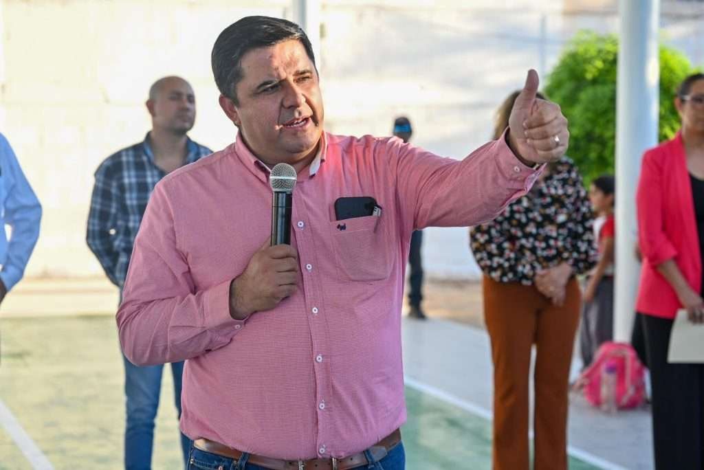 El Presidente Municipal, Homero Martínez, supervisó la conclusión de la construcción de un domo y una cancha de usos múltiples en el Jardín de Niños