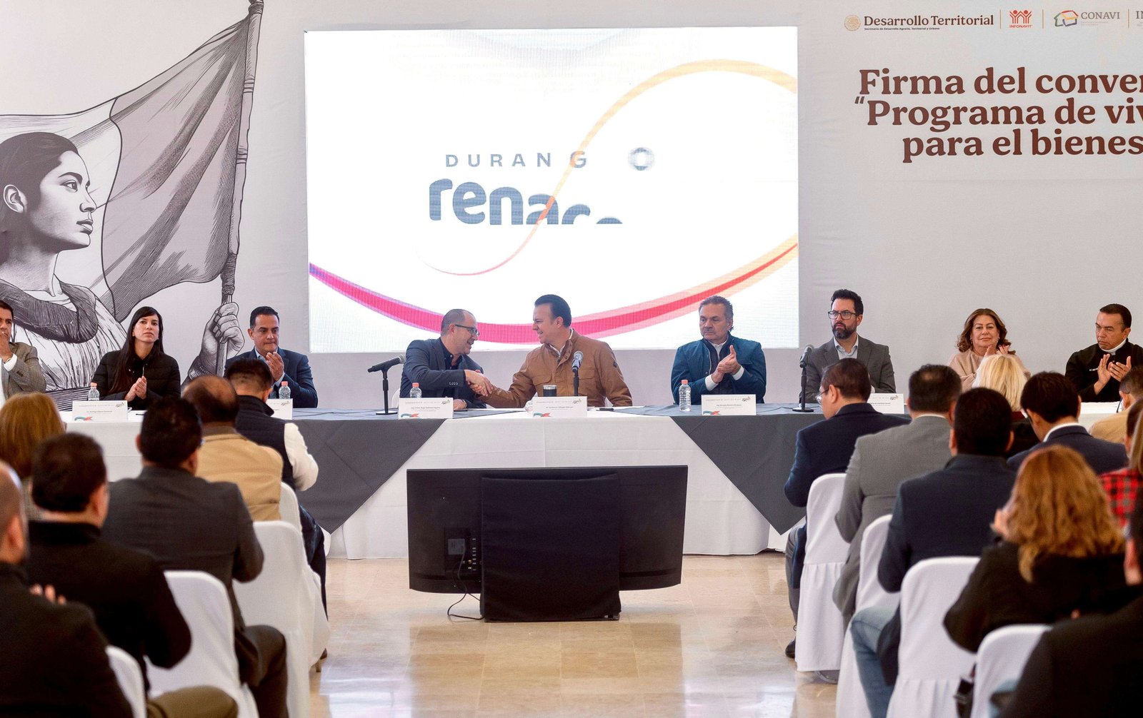 Por su parte, el director general del Instituto del Fondo Nacional de la Vivienda para los Trabajadores (INFONAVIT), Octavio Romero Oropeza, señaló que este acuerdo permitirá agilizar trámites y garantizar suelo para la construcción de 11 mil 200 viviendas en la entidad. También informó que, por instrucción de la Presidenta de México, 29 mil 955 personas en Durango han sido beneficiadas con el congelamiento de créditos, eliminando esquemas que en el pasado hacían impagables las hipotecas.