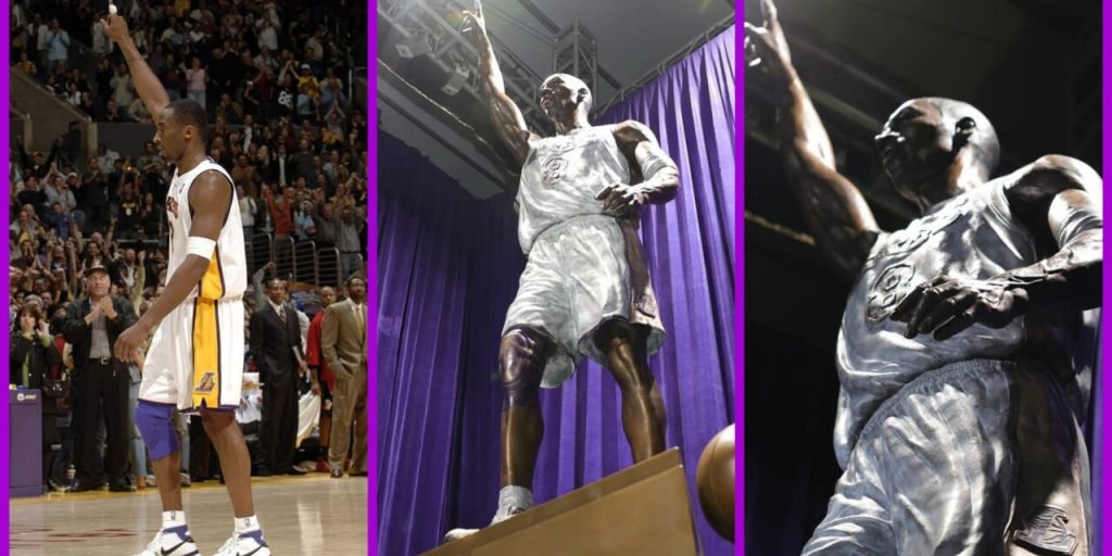 Los Lakers de Los Ángeles revelaron una estatua de mil 814 kilogramos de Kobe Bryant el jueves, en honor a su fallecida superestrella con una