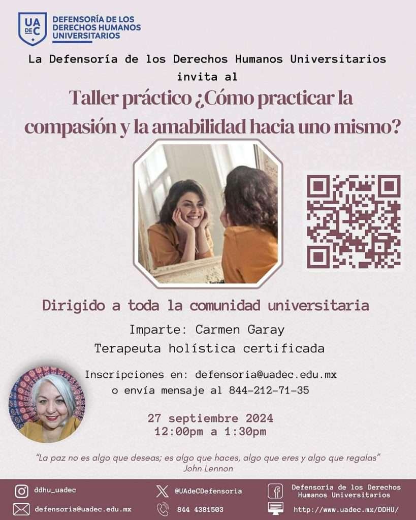 SALTILLO, Coahuila. 25 de septiembre de 2024. La Universidad Autónoma de Coahuila, a través de la Defensoría de los Derechos Humanos Universitarios (DDHU), invita a